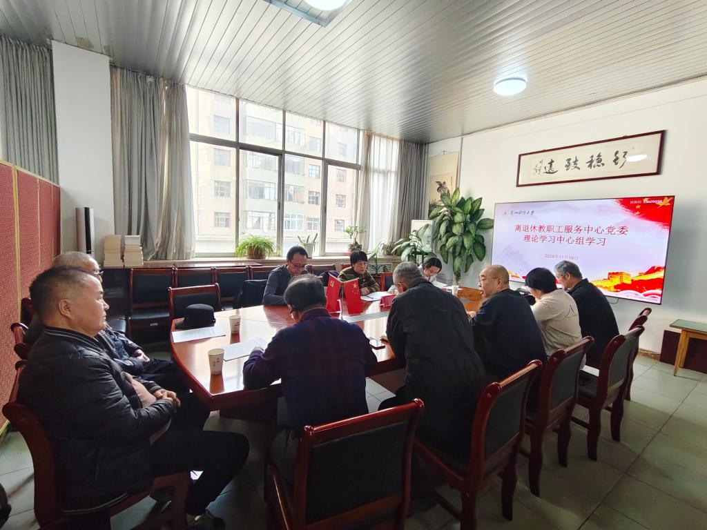 11月19日下午,离退休教职工服务中心党委理论学习中心组在段家滩校区会议室专题学习党的二十届四中全会精神。校党委常委、党委组织部部长唐莉、党委宣传部副部长贾晓旸及党委组织部蔡鑫一行列席旁听并指导。会议由离退休教职工服务中心党委书记孟勇主持。